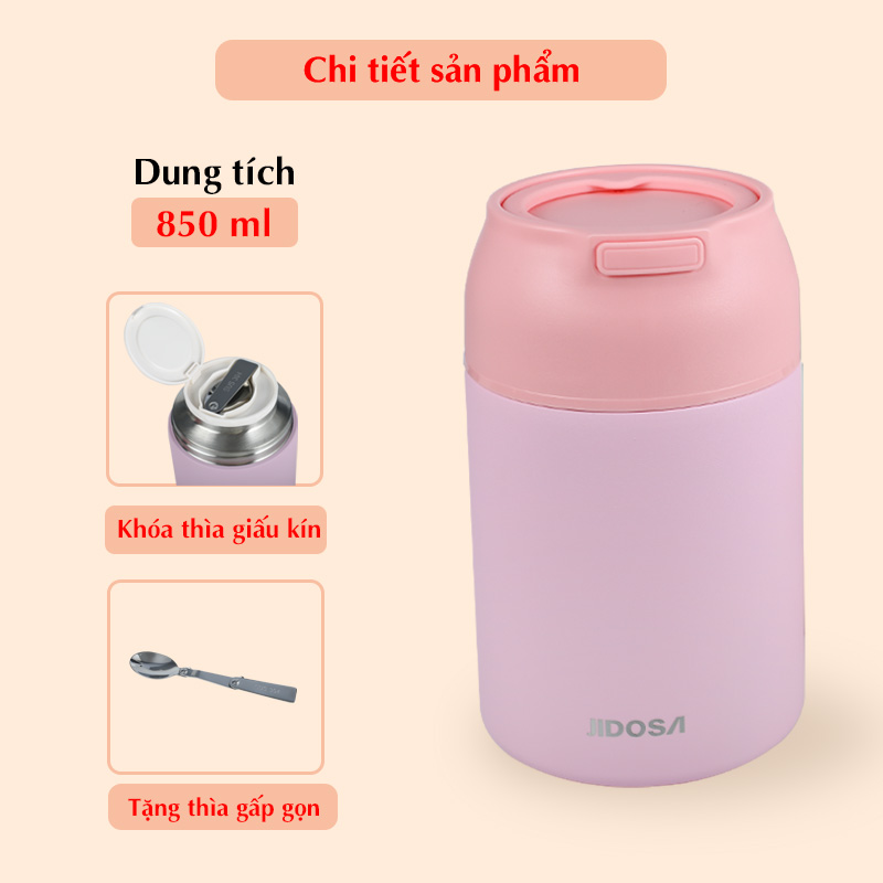 Bình ủ cháo inox 316 JIDOSA JD3870 hộp giữ nhiệt lâu dung tích 850ml tặng kèm muỗng gấp gọn tiện lợi