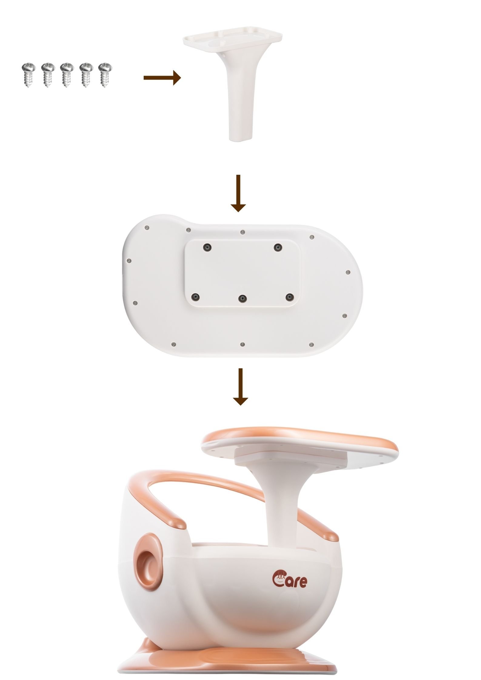 1. Lắp cột bàn và khay ăn vào thân ghế