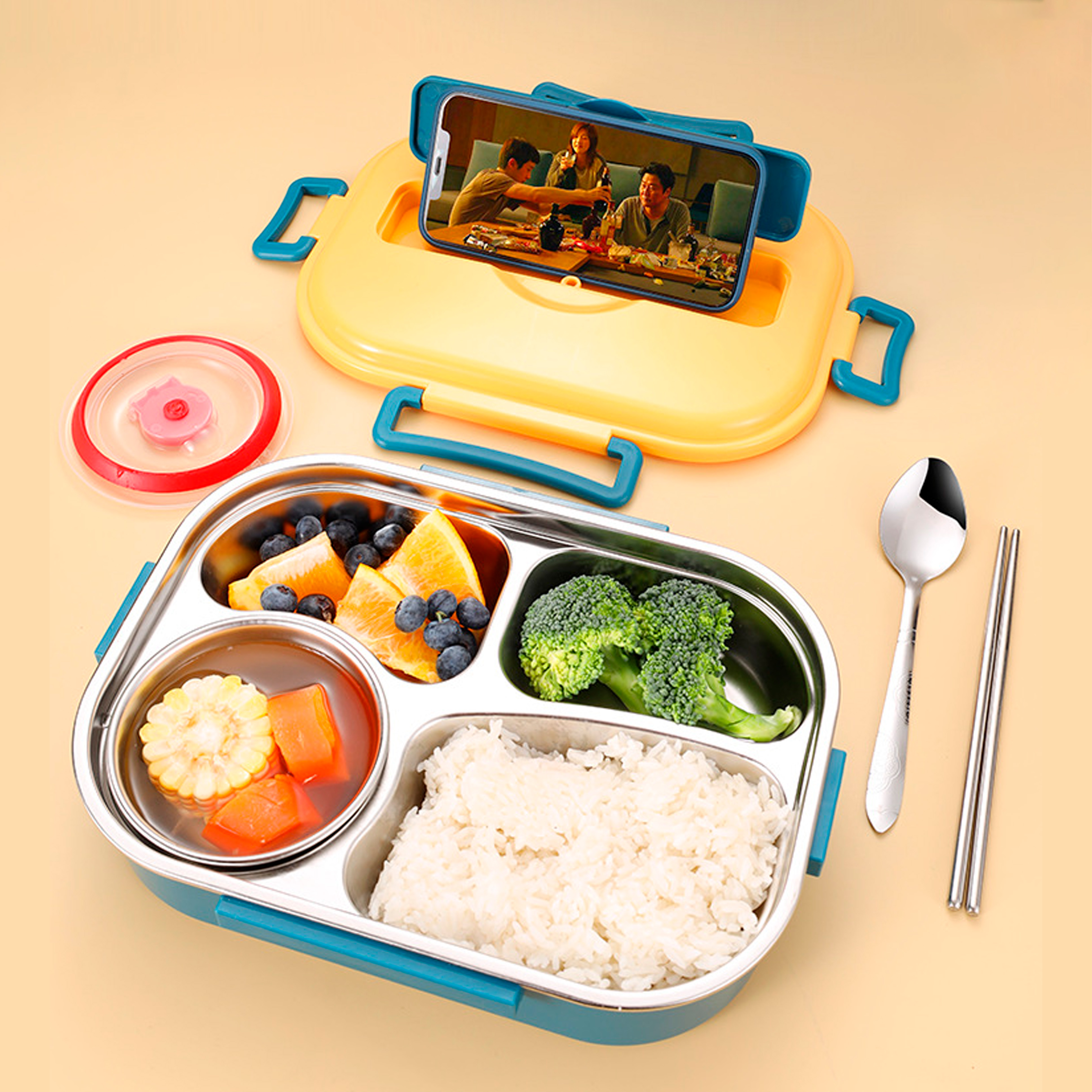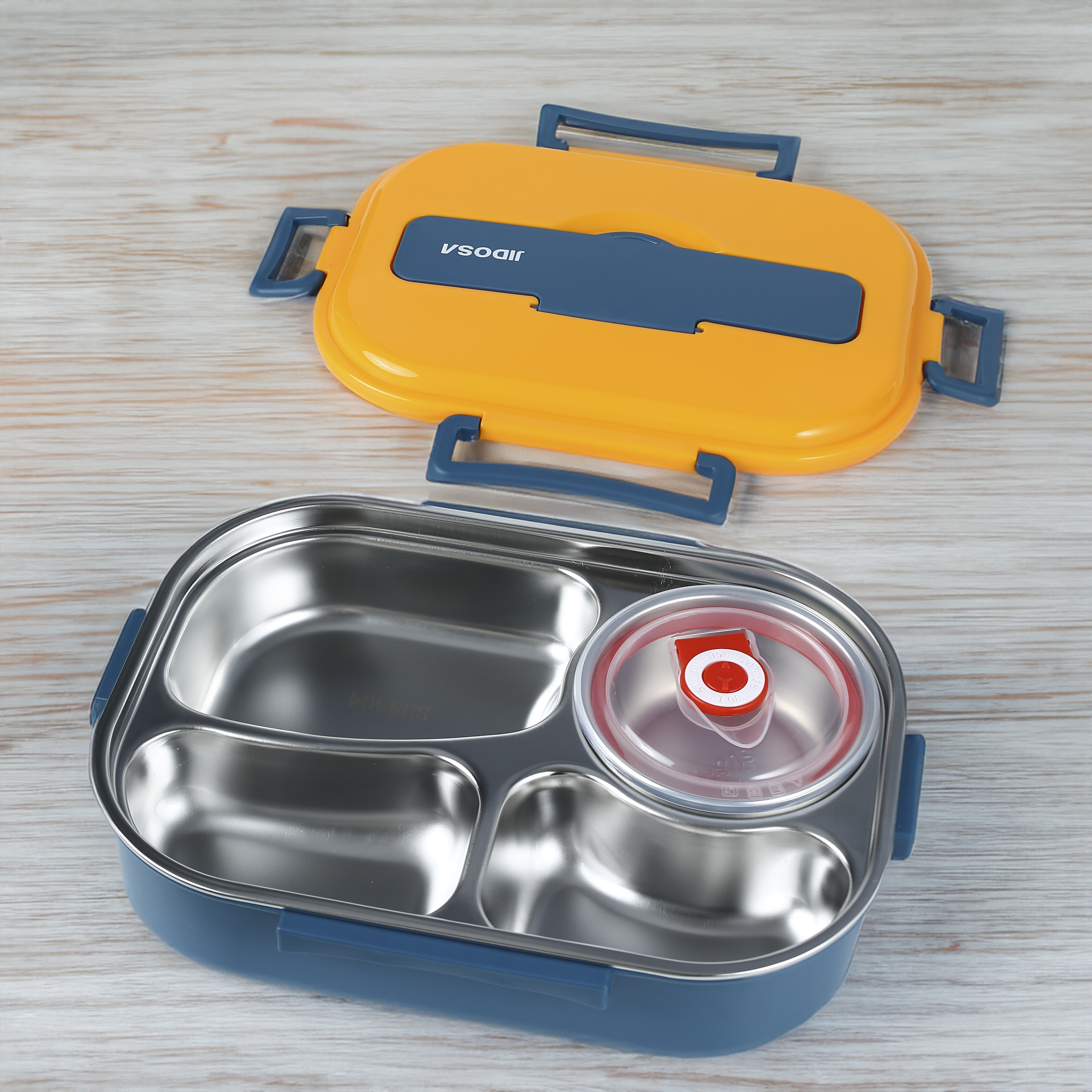 Hộp cơm giữ nhiệt Văn Phòng JIDOSA inox 304 - 1500ml đựng thức ăn 4 ngăn kèm bát đựng canh chống tràn