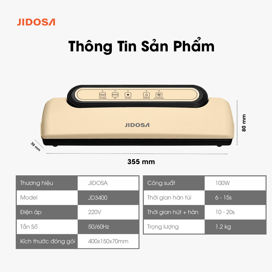 Máy Hút Chân Không Thực Phẩm JIDOSA JD3400, bảo hành 12 tháng
