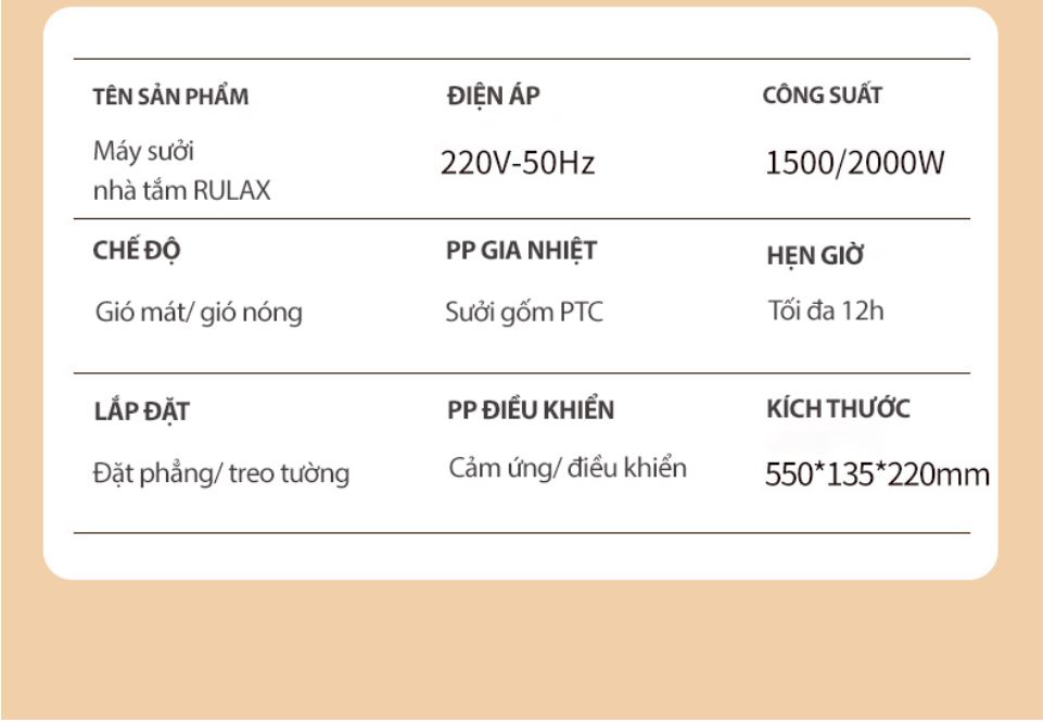 Máy Sưởi Nhà Tắm Treo Tường Rulax GỐM CERAMIC CAO CẤP ĐA NĂNG BẢO HÀNH 12 THÁNG