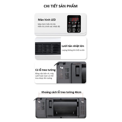 - Quạt sưởi điều hòa Ceramic có hình dáng giống chiếc điều hòa kích thước nhỏ gọn tiện lợi cho bạn lắp đặt trong trong phòng ngủ.